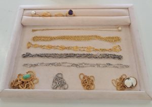 指輪やネックレス、ブローチなどをまとめてお持ち込みいただいたお客様がいらっしゃいました。
